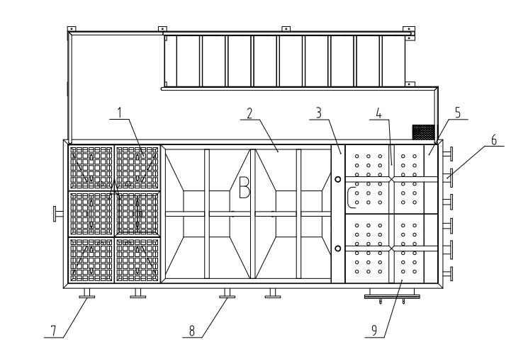 | 7 | 絮凝區(qū)排泥管 | 8 | 沉淀區(qū)排泥管 | 9 | 濾室擋板 |