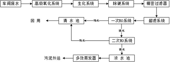 焦化廢水其極難生化,必須進(jìn)行可生化性提高,常用的高級(jí)氧化技術(shù)有:電催化氧化法、臭氧催化氧化法、芬頓氧化法等。廢水的生化性提高后才能進(jìn)入生化系統(tǒng)進(jìn)行有效降解。為實(shí)現(xiàn)回用目的還必須增加深度處理系統(tǒng),由于焦化廢水含有大量的鈣離子,所以必須進(jìn)行硬度的去除工作,以防止膜系統(tǒng)的垢類堵塞。最終通過雙極反滲透實(shí)現(xiàn)水質(zhì)的絕對(duì)凈化。經(jīng)過兩級(jí)反滲透處理的濃縮液再經(jīng)過蒸發(fā)器蒸發(fā)結(jié)晶后實(shí)現(xiàn)零排放的目的。