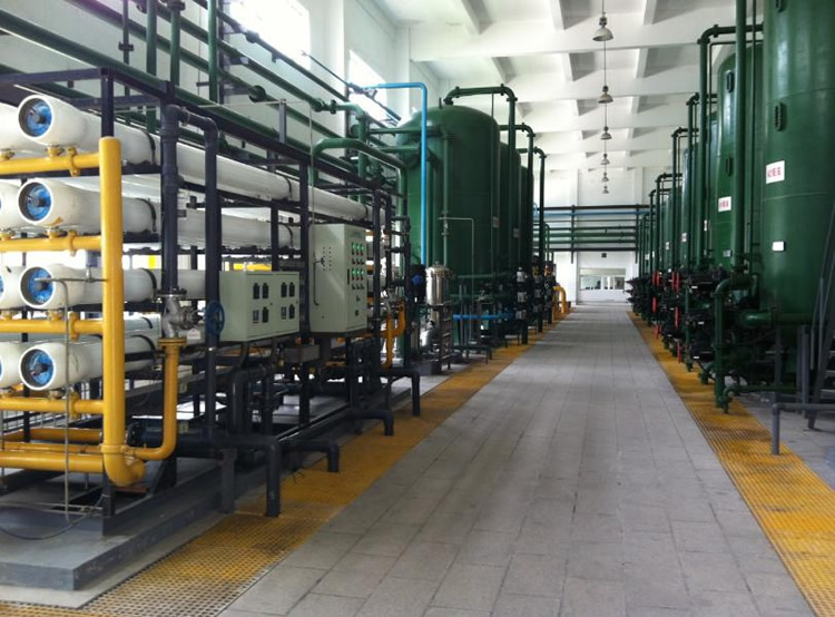 原水→原水加壓泵→多介質(zhì)過濾器→活性炭過濾器→軟水器→精密過濾器→一級(jí)反滲透機(jī)→中間水箱→中間水泵→EDI系統(tǒng)→微孔過濾器→用水點(diǎn)。