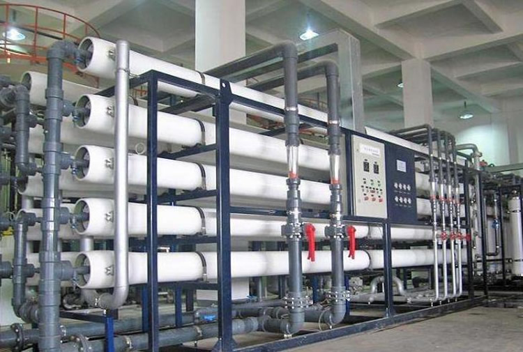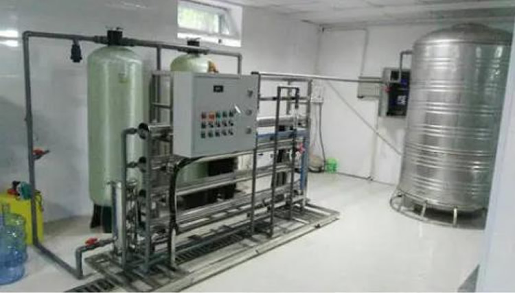 原水池→原水泵→石英砂過濾器→活性炭過濾器→阻垢劑裝置→5μm精密過濾器→1μm精密過濾器→一級(jí)高壓泵→一級(jí)RO反滲透→二級(jí)高壓泵→二級(jí)RO反滲透→臭氧發(fā)生器→無菌水儲(chǔ)罐