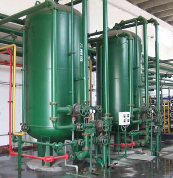 原水泵→石英砂過濾器→活性炭過濾器→陽床過濾器→脫碳塔→中間水箱→增壓泵→陰床過濾器→混床過濾器→純水箱