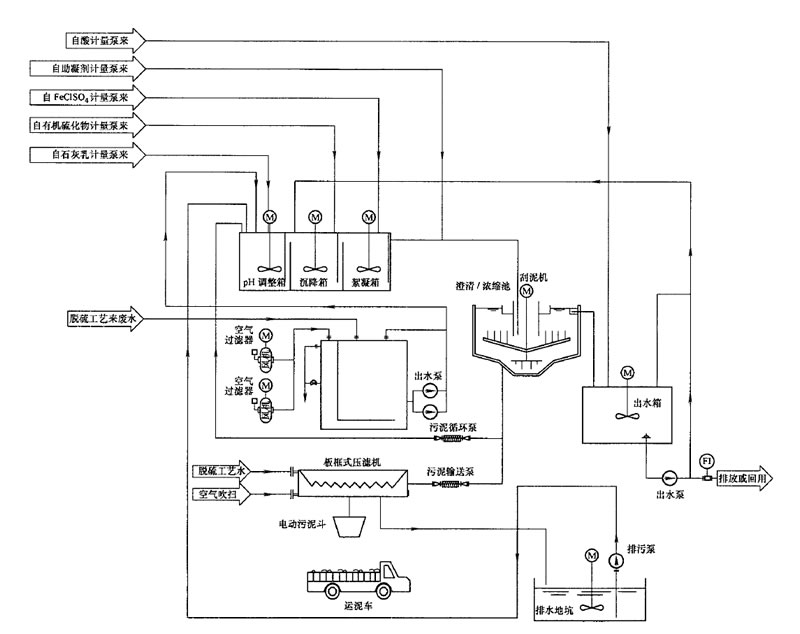脫硫廢水水質(zhì)處理工藝流程