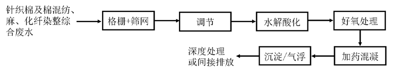 (2)針織棉及棉混紡染整、麻染整以及化纖染整的綜合廢水水質(zhì)情況類(lèi)似,其常規(guī)處理宜采用生化+物化組合工藝