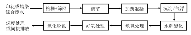 (5)印花或蠟染綜合廢水常規(guī)處理宜采用物化+生物脫氮組合工藝