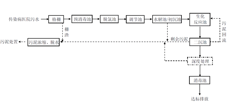 2.2.2.傳染病醫(yī)院污水,一般采用預(yù)消毒+二級處理+(深度處理)+消毒工藝
