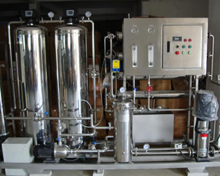 注射用水是以純化水作為原水,經(jīng)特殊設(shè)計的蒸餾器蒸餾,冷濃冷卻后經(jīng)膜過濾制備而得的水。注射用水可作為配置注射劑用的溶劑。我們公司從整個醫(yī)藥行業(yè)用超純水的特點出發(fā),針對不同用戶對高純水的不同要求,采用雙級反滲透、