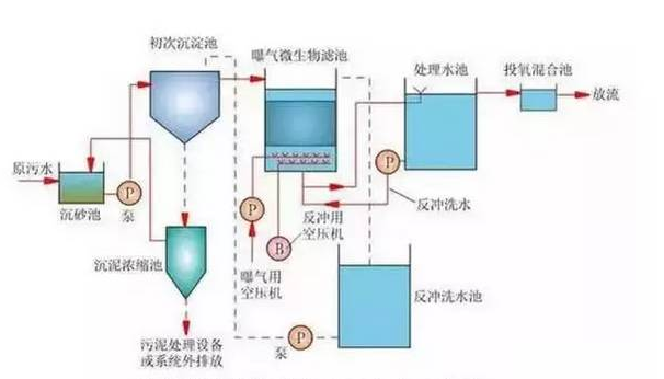 曝氣生物濾池也叫淹沒式曝氣生物濾池,是在普通生物濾池、高負(fù)荷生物濾池、生物濾塔、生物接觸氧化法等生物膜法的基礎(chǔ)上發(fā)展而來的,被稱為第三代生物濾池.其工藝原